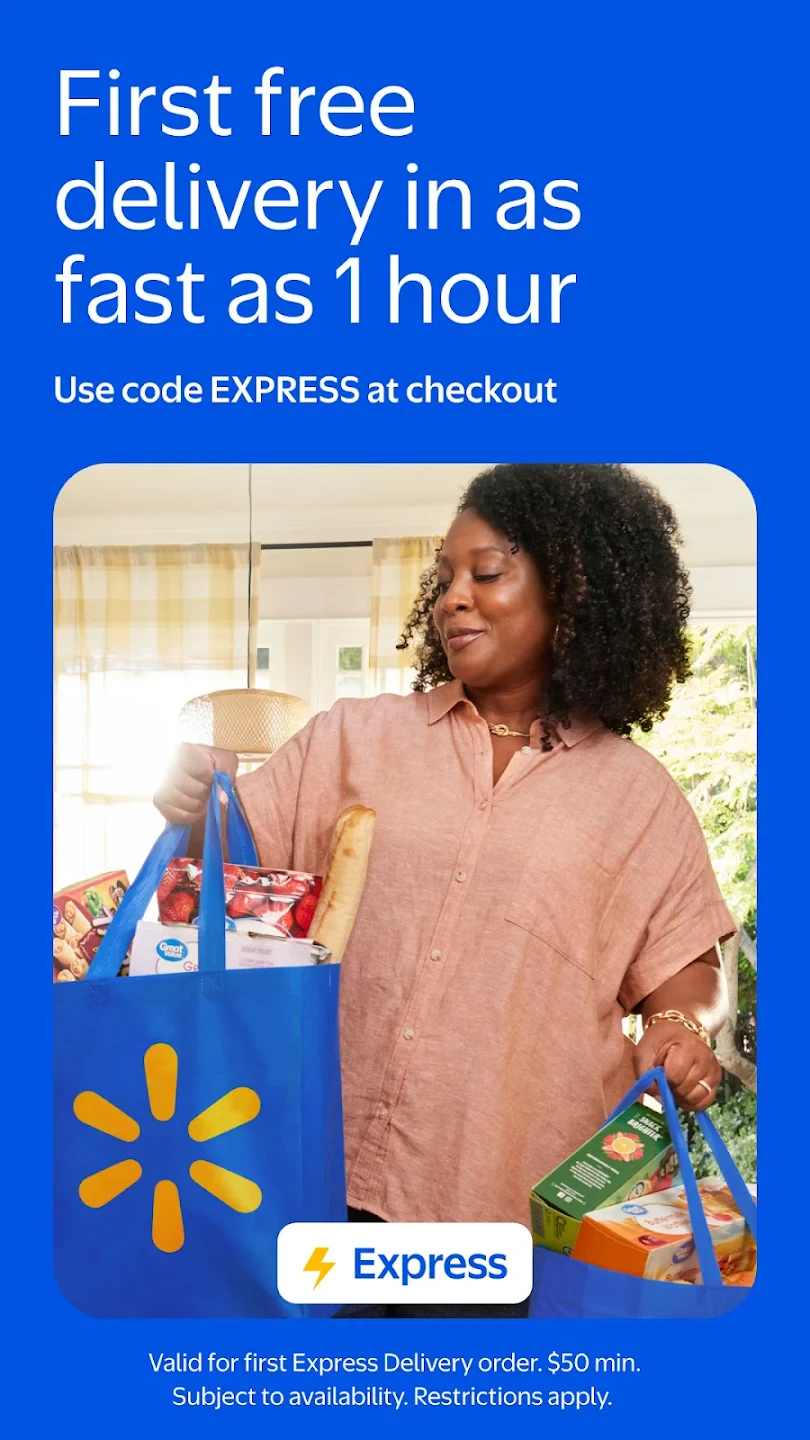- Walmart Express Delivery: Get groceries and other items delivered directly to your door with speed options like 1-hour delivery for select stores, significantly improving convenience for those needing items urgently or without the time to shop in-store.