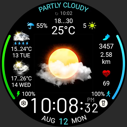 - Highly Customizable Design: Users can personalize aspects like the color scheme, the size and style of weather icons, font choices for temperature displays, and even select which specific weather data points to show based on their smartwatch model’s limitations. This flexibility ensures a unique and comfortable viewing experience tailored to individual style and device capabilities.