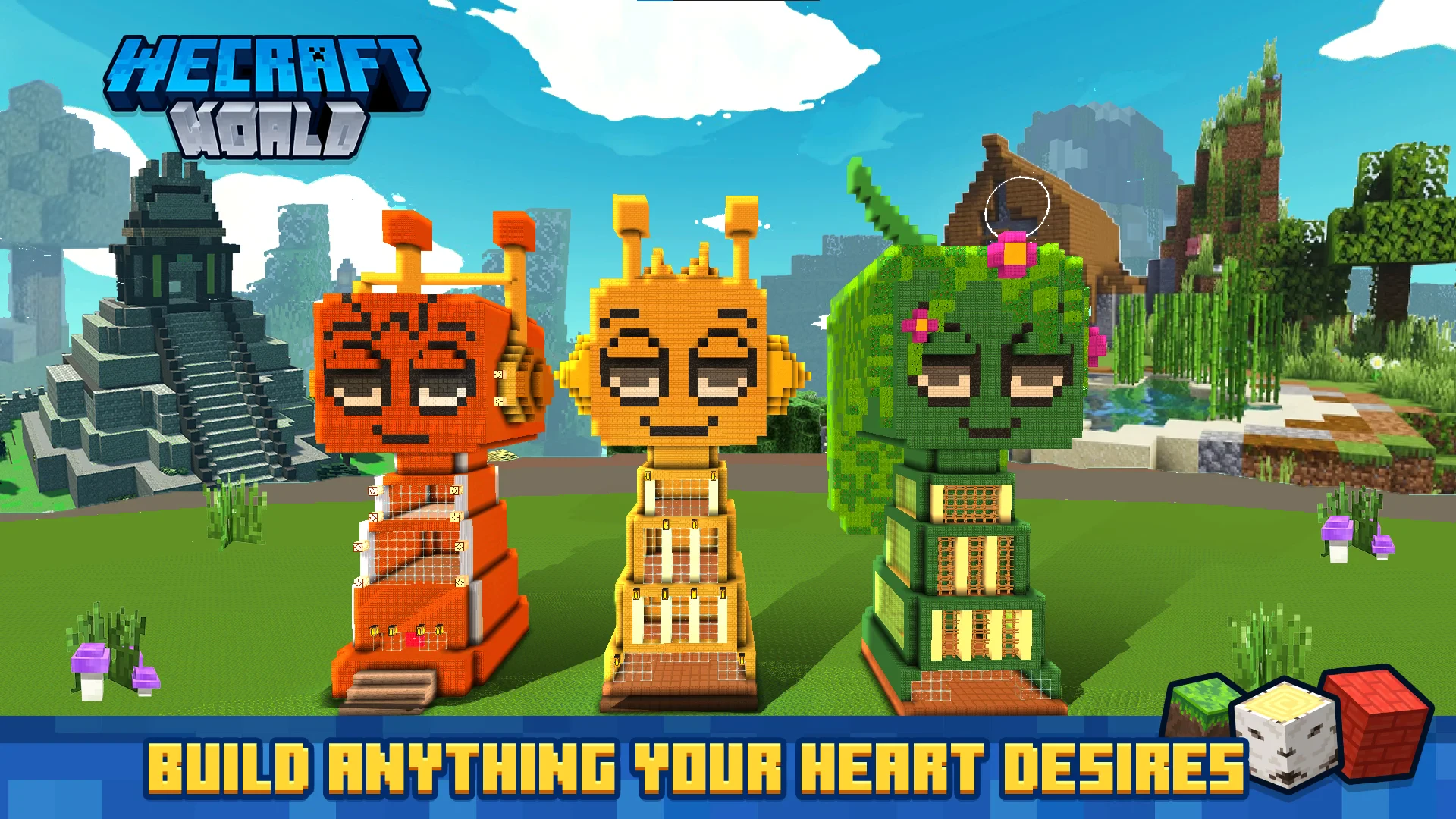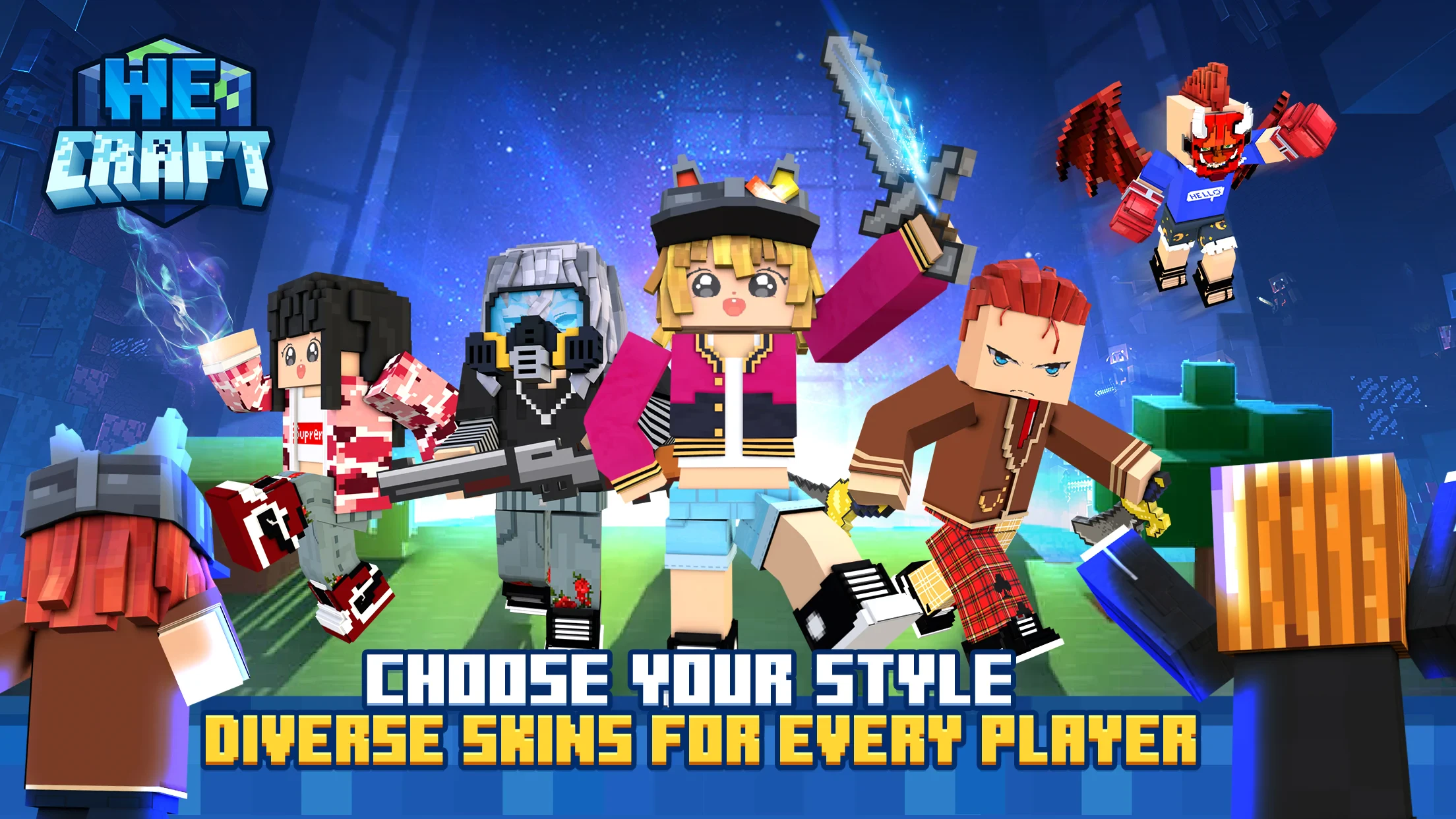 - Modes or Levels: WeCraft Worlds offers single-player, local cooperative, and online multiplayer modes. Survival mode challenges players with limited resources, while creative mode lets them build freely. Unique content includes seasonal events, procedurally generated challenges, and custom biome packs.