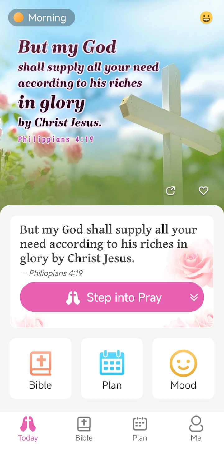 A simpler app focused solely on displaying random daily verses with a “like” or “next” button. It offers fast access to scripture but lacks structured plans or guided prayers found in “Women’s Bible-Daily Pray”.