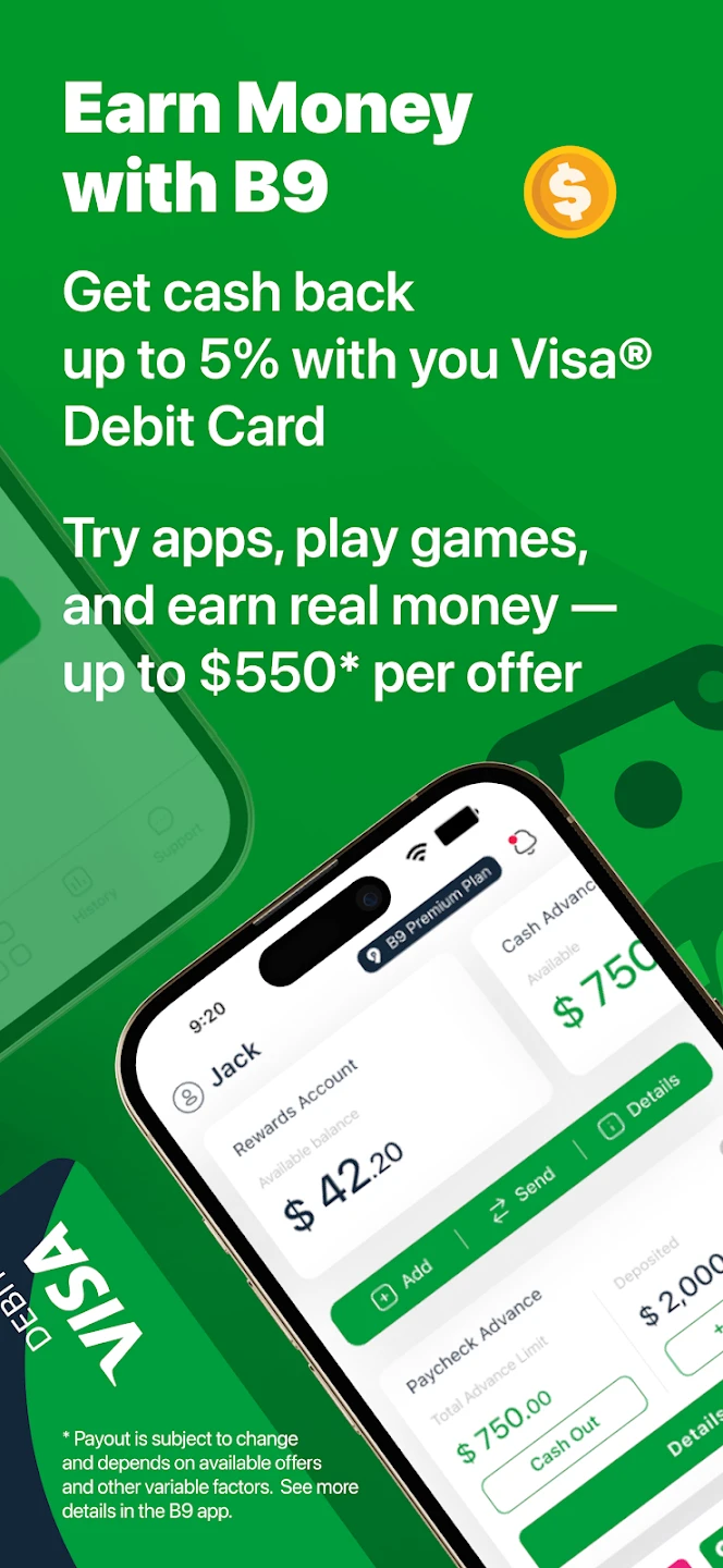 Its key value lies in offering prompt cash solutions, integrated banking tools for day-to-day finances, and diverse earning options. B9: Cash Advance・Banking・Earn simplifies money management, offering flexibility for users navigating various financial situations.