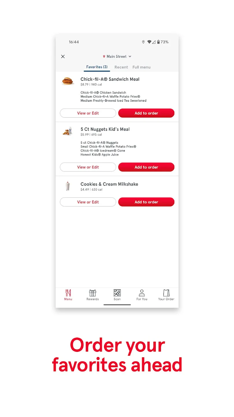 • Order Ahead: Plan your meal by selecting items from the digital menu and scheduling your pickup. This feature saves you precious time during busy days while ensuring your food is freshly prepared and ready for quick collection at your preferred Chick-fil-A® location.