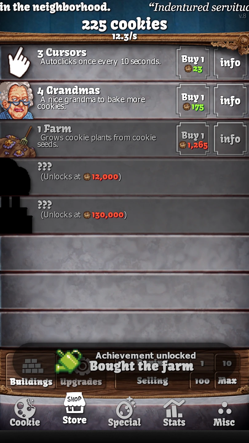 • Step 2: Use your points to buy buildings like cottages or farms, which automatically generate cookies over time, helping you transition from manual clicking.