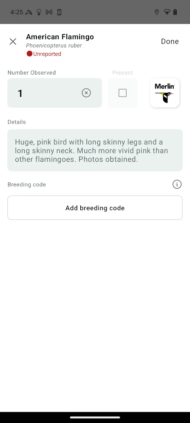 - Species List Tracking: Automatically track species seen during outings across different regions and timeframes. This feature simplifies life-list management and helps enthusiasts work towards challenging regional or global records like the MacGillivray’s seaside sparrow.