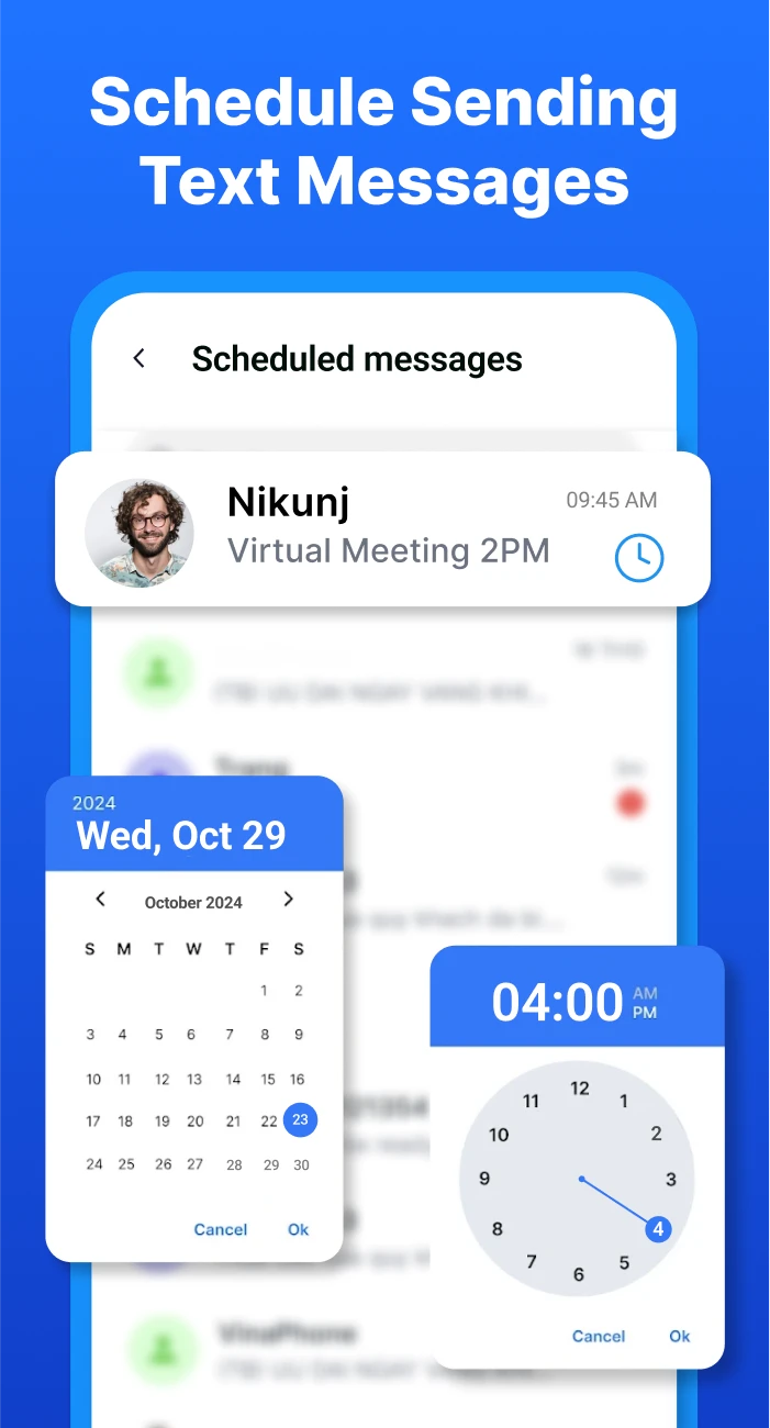 - Message Scheduling & Read Receipt Requests: Send messages at specific times (SMS only) or request read receipts to see if your message has been seen. This enhances usability by allowing planned outreach or confirming important communication was actually received by the recipient.
