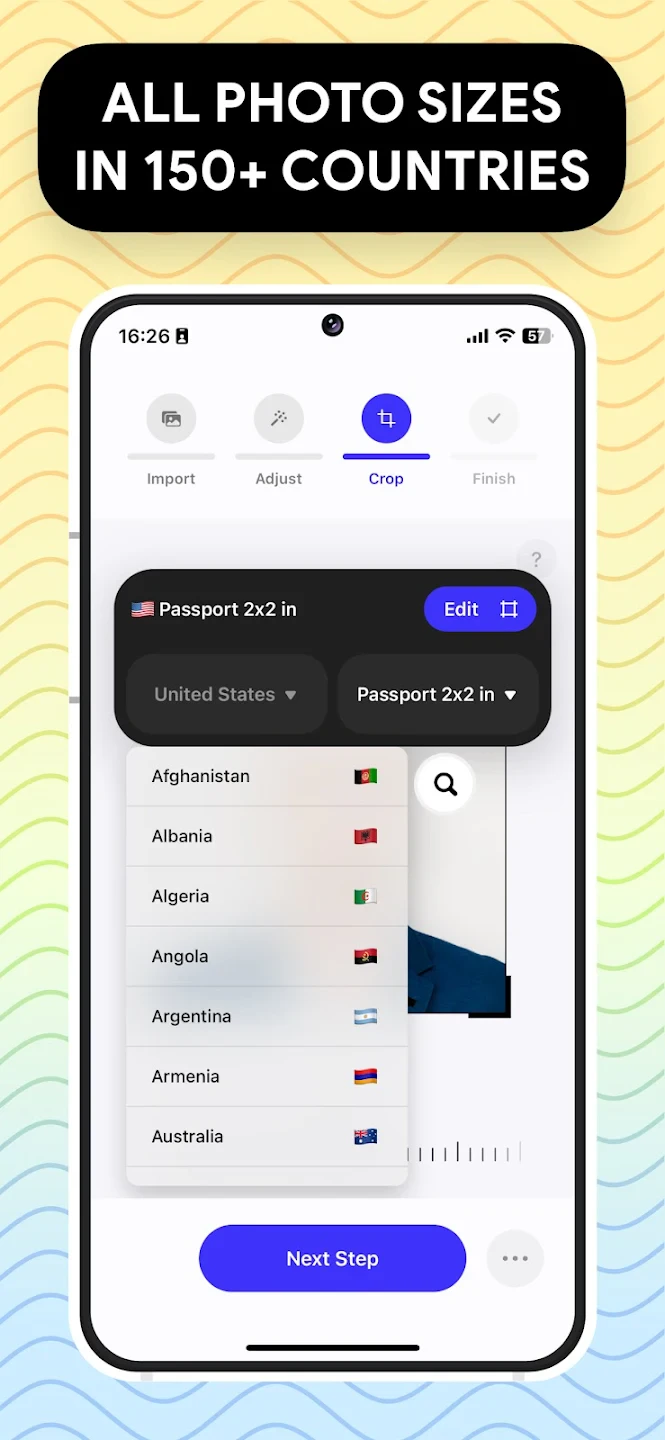 A: Our app supports over 180 global formats. For US passports, select “2×2 inch, white or off-white background, 300dpi.” The app will instantly recognize and apply the correct dimensions, pose alignment, and brightness specifications to ensure approval.