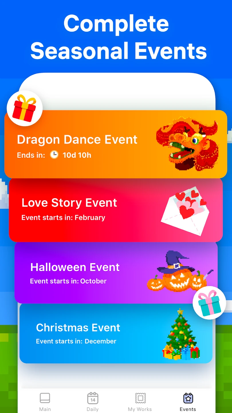 • Visuals or Art Style: The game boasts charming, high-quality pixel art rendered in vibrant colors, featuring detailed designs from animals and fantasy scenes to nature landscapes, all presented with smooth animations and intuitive touch controls enhanced by delicate UI elements.