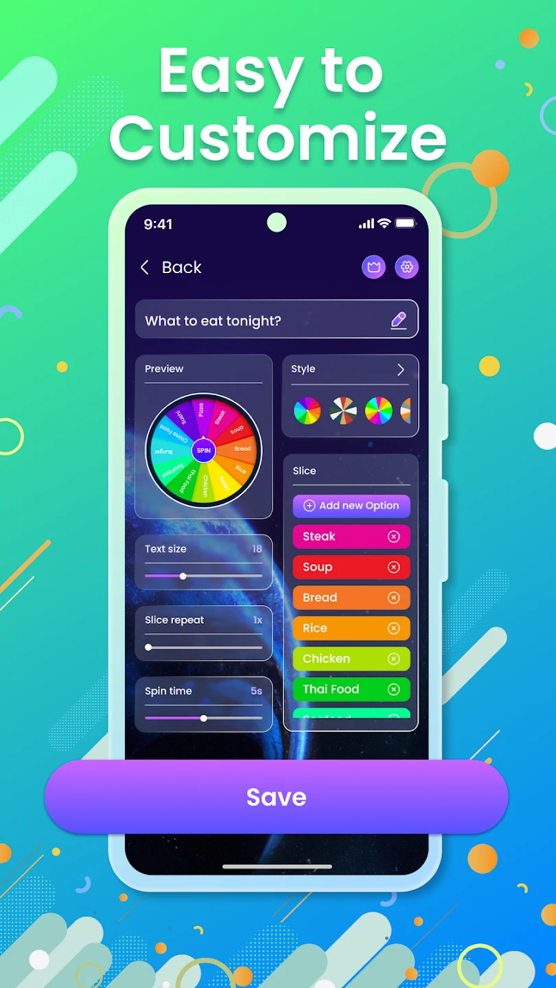A: Launch the app, tap the ‘Add Item’ button to build your wheel by entering names, teams, options, or prizes. Customize the wheel appearance and selection rules using the settings menu before giving it a spin!