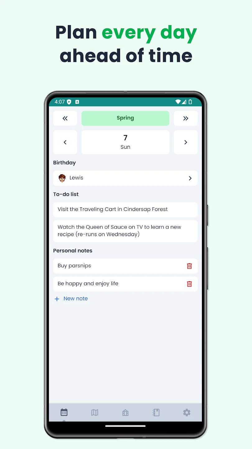 • Daily Quest & Achievement Manager: It provides a dedicated space to record completed daily tasks within the game, such as fishing at Pierre’s pier, foraging for specific herbs, or delivering honey to the local post office, along with special achievements like upgrading the farm or befriending all residents. This integration simplifies progress tracking and serves as a checklist for ambitious farming goals.